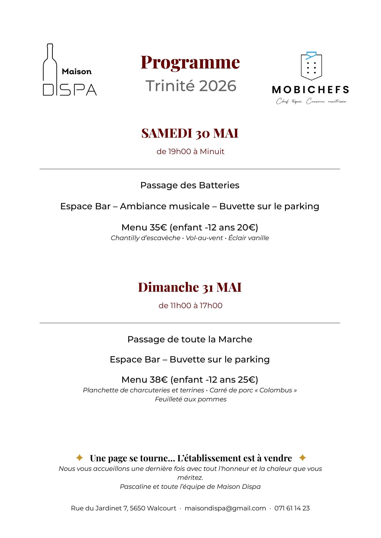 Espace bar et buvette sur le parking. Menu à réserver Samedi et Dimanche. |